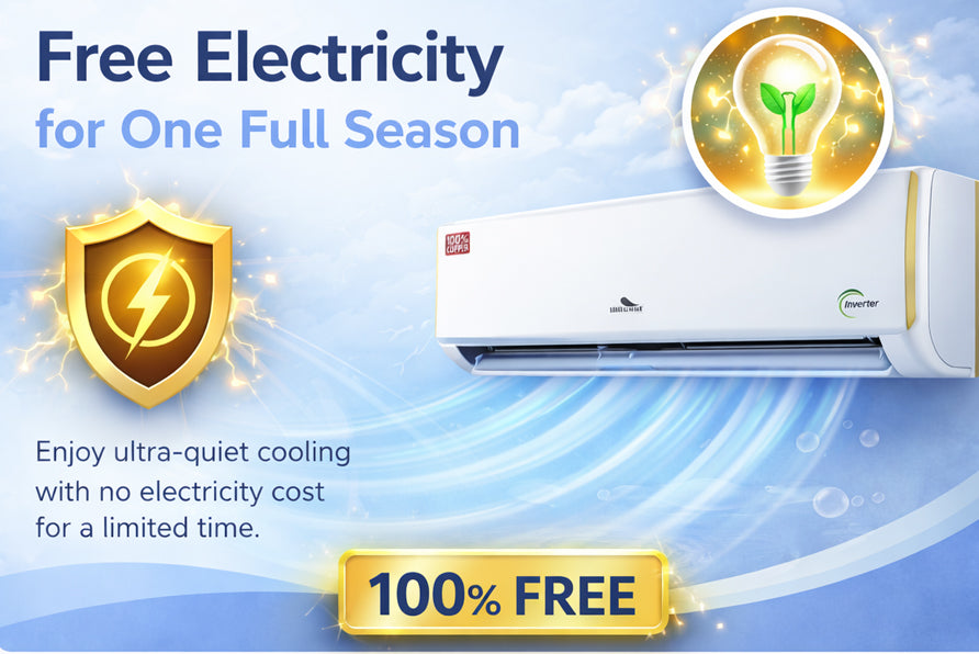 Get free electricity for one full season with free installation, powered by 5-in-1 convertible cooling and AI Smart Inverter technology for optimized performance and low power use. Enjoy instant turbo cooling in extreme heat, super silent operation, and a durable copper condenser with stabilizer-free protection.